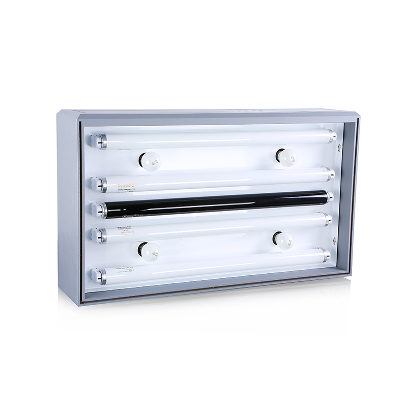 T60B color light booth is equipped with 4 light sources. Colors appear differently under different lighting sources. To avoid/reduce the assessment error when performing color contrast, we can make use of a Light Booth / Viewing Booth/Color Light Box to simulate different light sources to obtain an objective assessment of color and color difference, anytime, anywhere.
