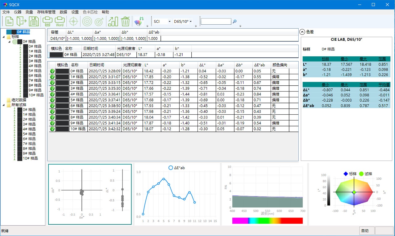 TS7036分光色差仪搭配的SQCX品质管理软件,适用于各个行业的品质监控和颜色数据管理。将用户的颜色管理数据化,比较颜色差别,生成测试报告,提供多种色空间测量数据,定制化客户的颜色管理工作。